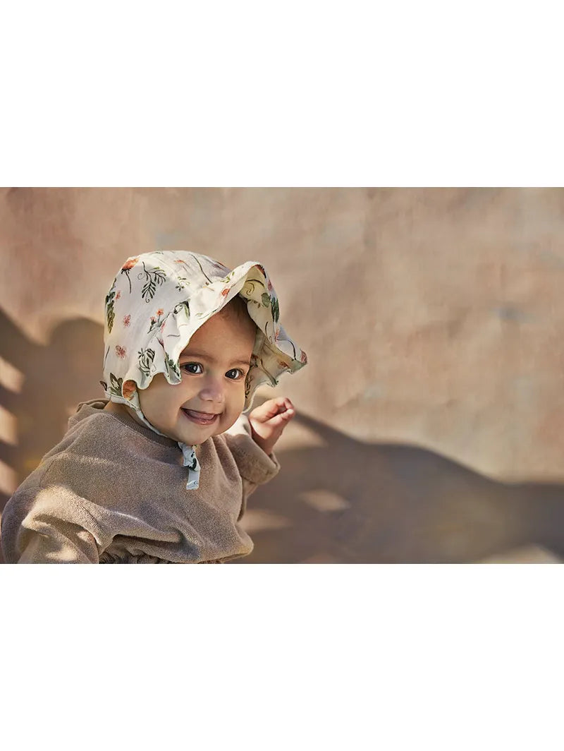 Med ett slätt innerfoder skyddar hättan effektivt mot kalla vindar. Dessutom har den ett SPF 30-skydd, vilket gör den till den perfekta solhatten för din bebis. Oavsett väder kommer ditt barn att vara både skyddat och stiligt.