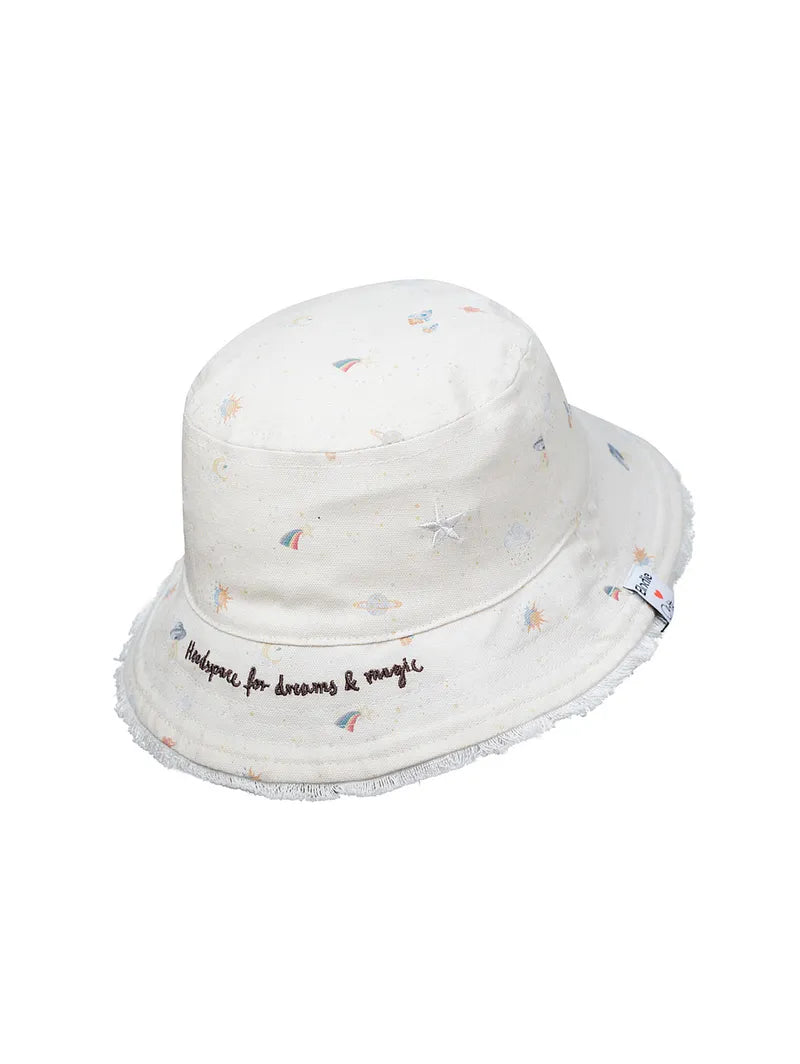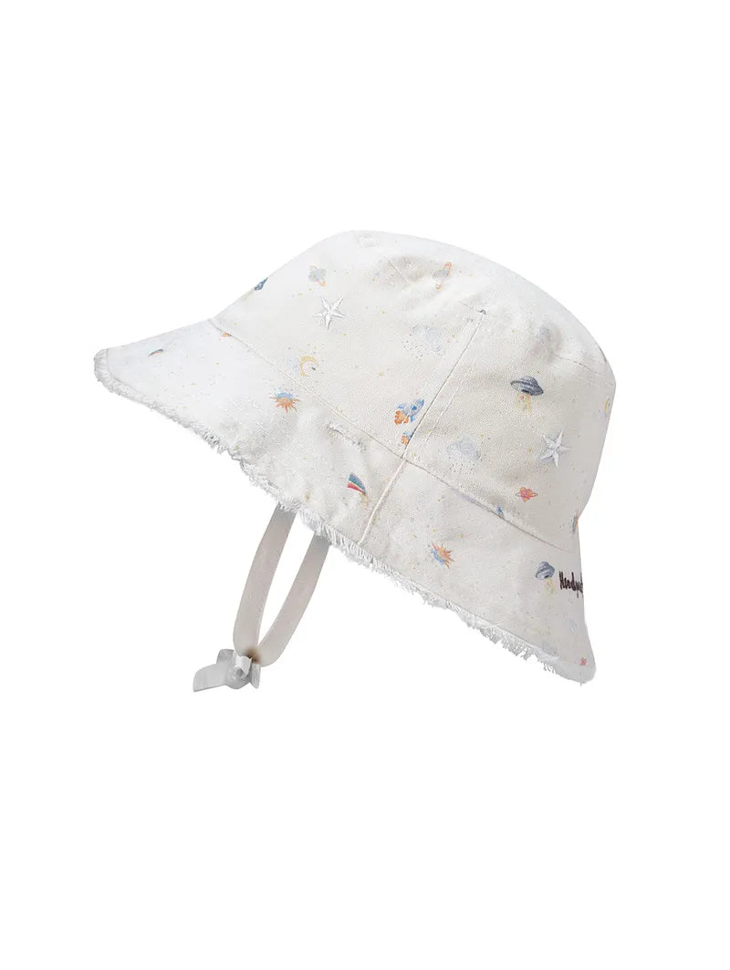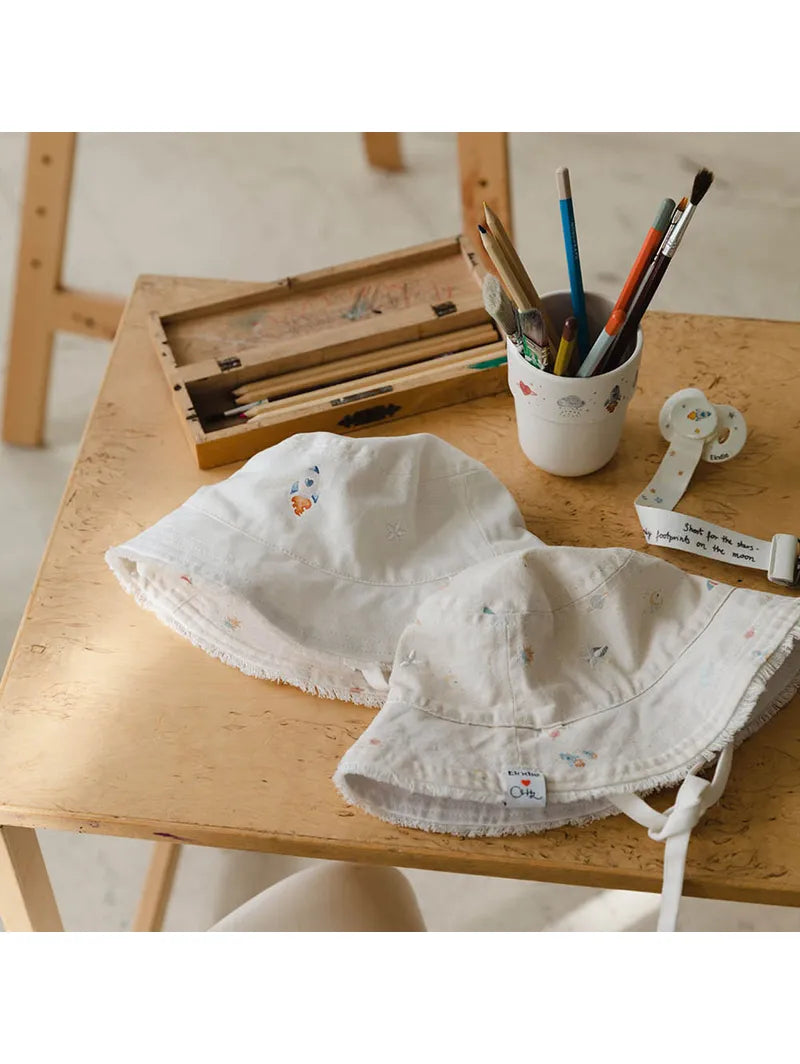 Hatten är tillverkad av 100% högkvalitativ bomull och finns i fyra storlekar, från nyfödd upp till tre år. Med sin breda bräda och ytskiktsbehandling ger den effektivt solskydd. Ventilationshålen bidrar till att hålla små huvuden svala under varma dagar.