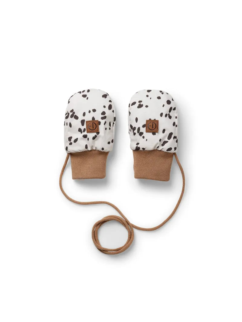 Den mindre storleken är utan tumme och har en bomullssnodd mellan vantarna för att de inte ska tappas bort, samt en stor bomullsmudd som håller dem på plats. Yttertyget är både vind- och vattenavvisande med Bionic Finish RUDOLF® för extra skydd.