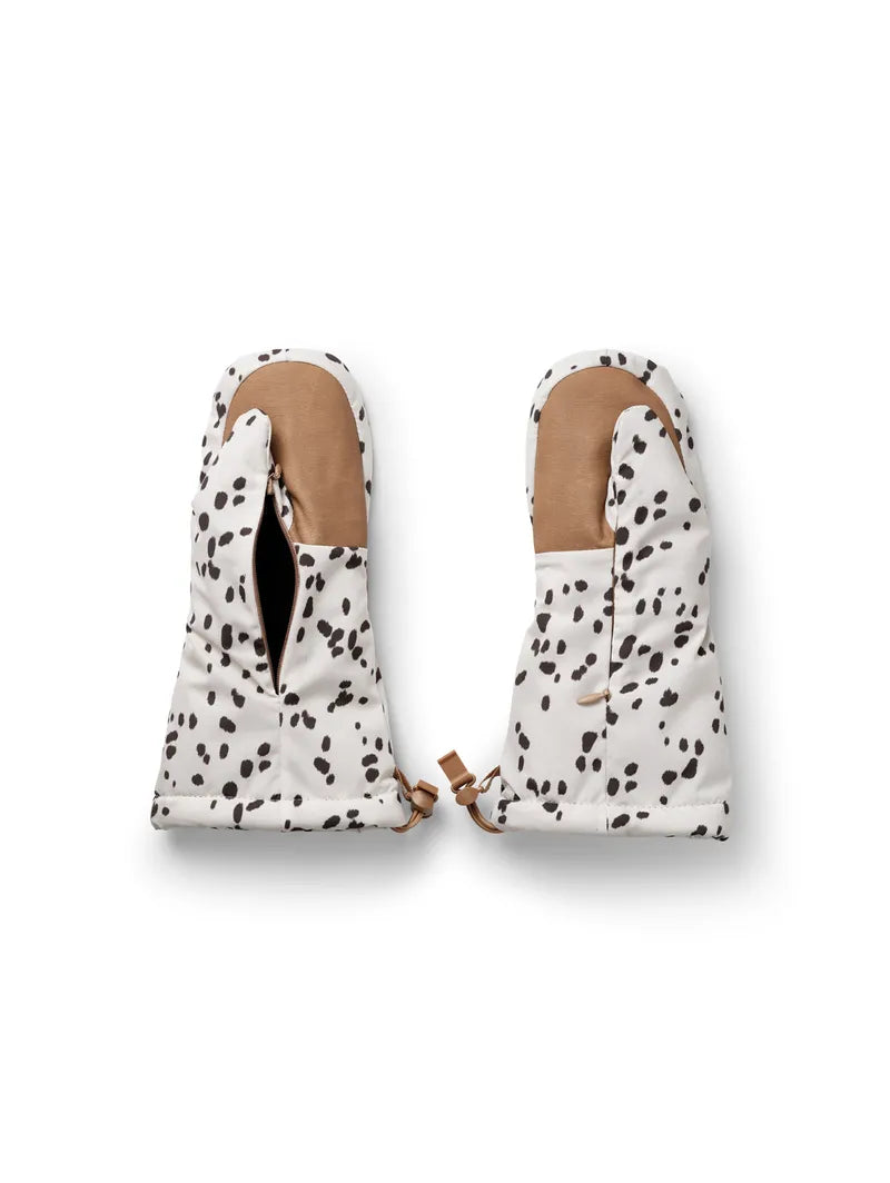 Låt oss presentera Vantar Dalmatian Dots - 1-3 år från Elodie. Dessa vantar finns i två storlekar och är perfekta för att hålla små händer varma och torra. Den större storleken har en extra bred öppning vid handleden för snabb och enkel användning, samt en justerbar bredd tack vare en kardborreflik. En smart dragkedja mellan tummen och handflatan hjälper dig att snabbt få barnets tumme på plats.