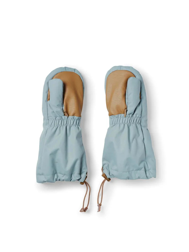 Den mindre storleken är utan tumme och har ett bomullssnöre mellan vantarna för att förhindra att de tappas bort, samt en stor bomullsribba som håller dem på plats. Det yttre tyget är både vind- och vattenavvisande tack vare Bionic Finish RUDOLF®.