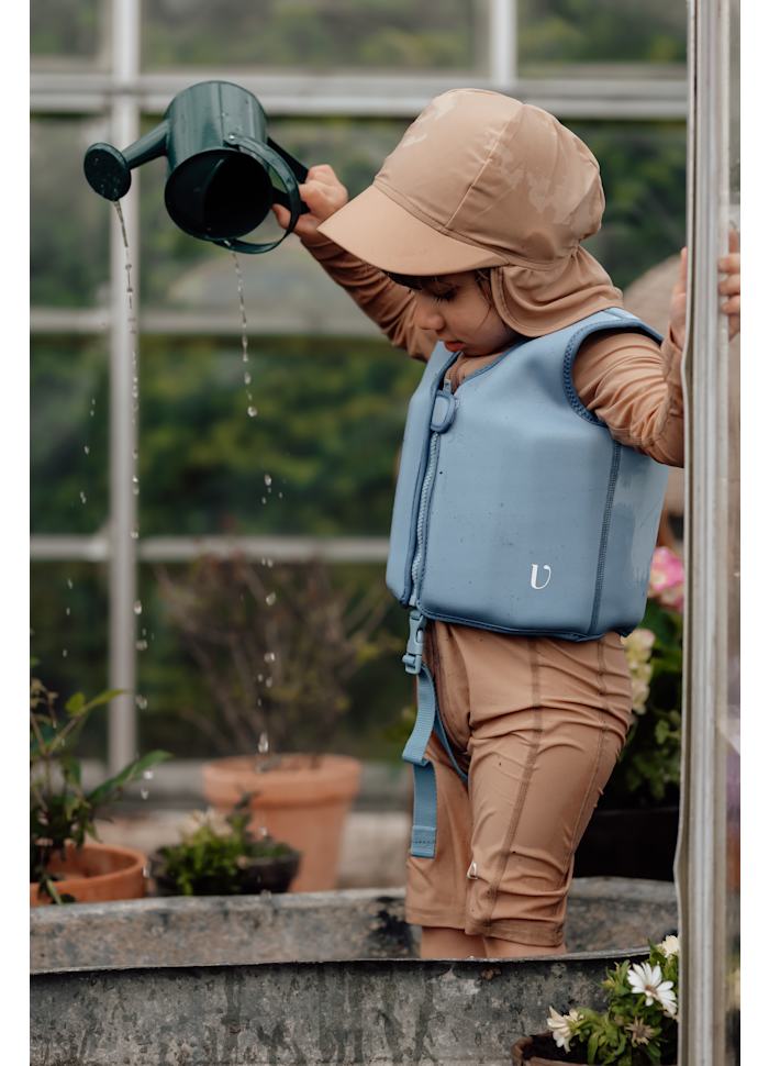 Hatten har en bekväm passform och passar utmärkt både i vatten och på land. Tyg som andas och torkar snabbt gör den perfekt för lek i solen under varma dagar.