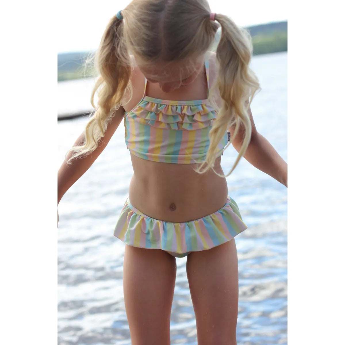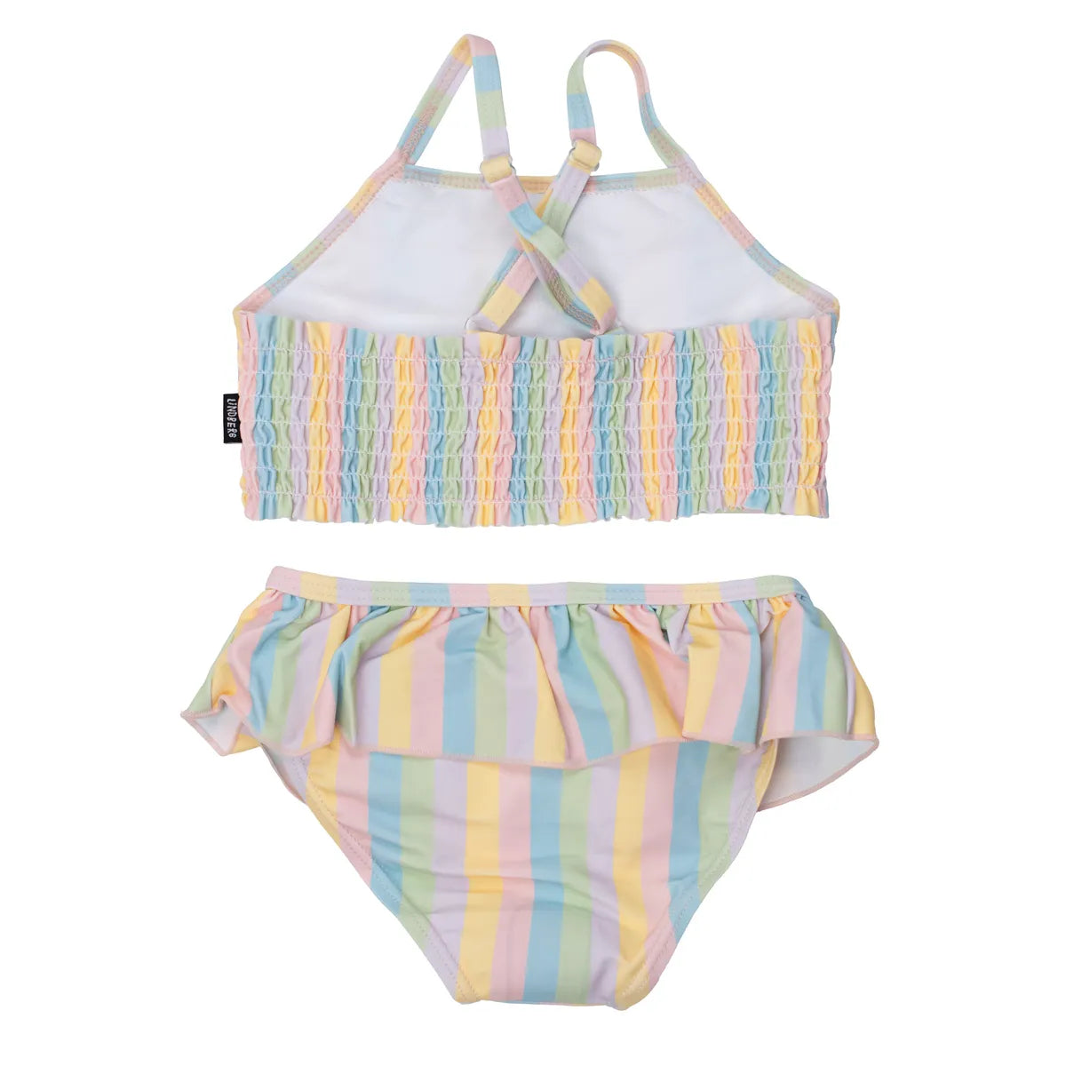 Låt oss presentera Lindberg Alice bikini i färgen Rainbow – en söt och funktionell bikini för barn med lekfulla detaljer och inbyggt solskydd, perfekt för sommarens stranddagar och badäventyr.