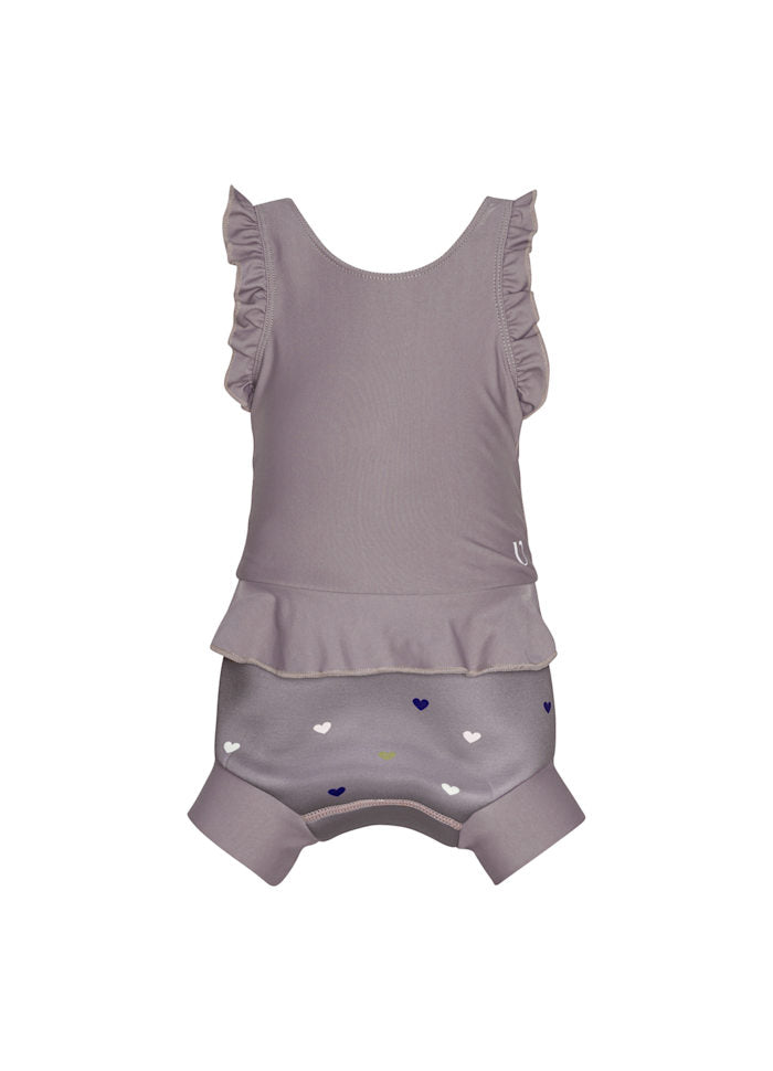 Baddräkten ger ett tryggt skydd mot små olyckor i vattnet och UV-skydd på täckta områden. Den passar lika bra i poolen som vid stranden och kan användas med simblöja för extra säkerhet.