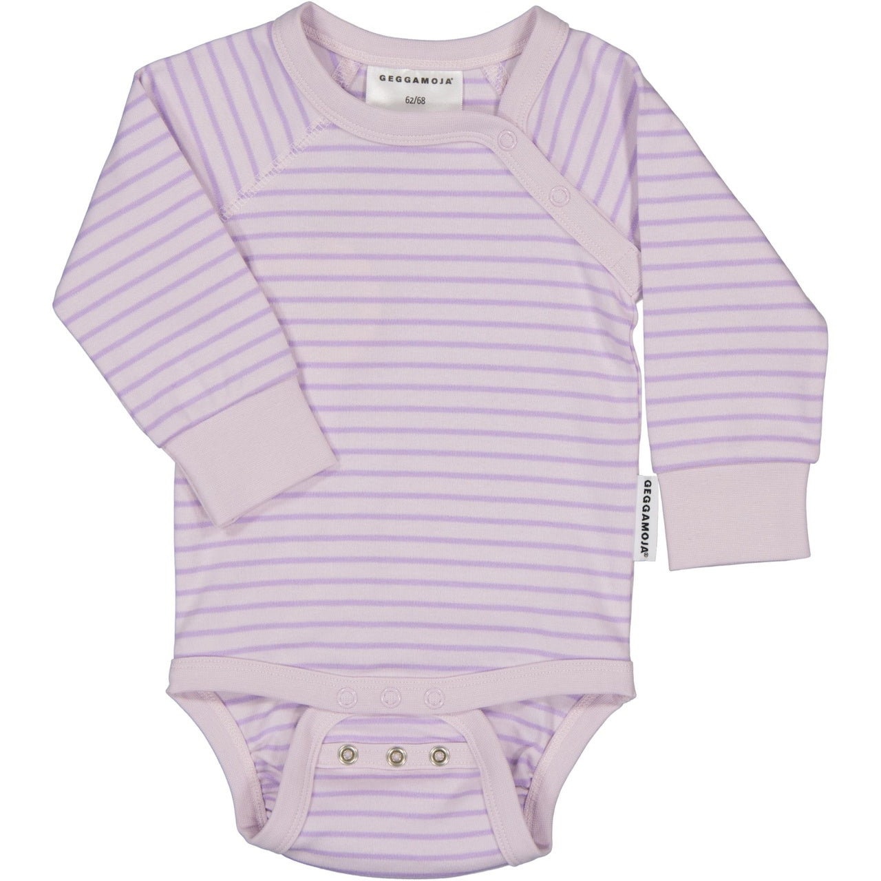 Låt oss presentera Body lång arm Lila från Geggamoja, en perfekt kombination av stil och funktionalitet för ditt barn. Tillverkad i 100% ekologisk bomull, erbjuder denna body en mjuk och skön känsla mot huden. Den randiga designen ger en lekfull touch, medan tryckknapparna vid vänster axel gör det enkelt att klä på och av.
