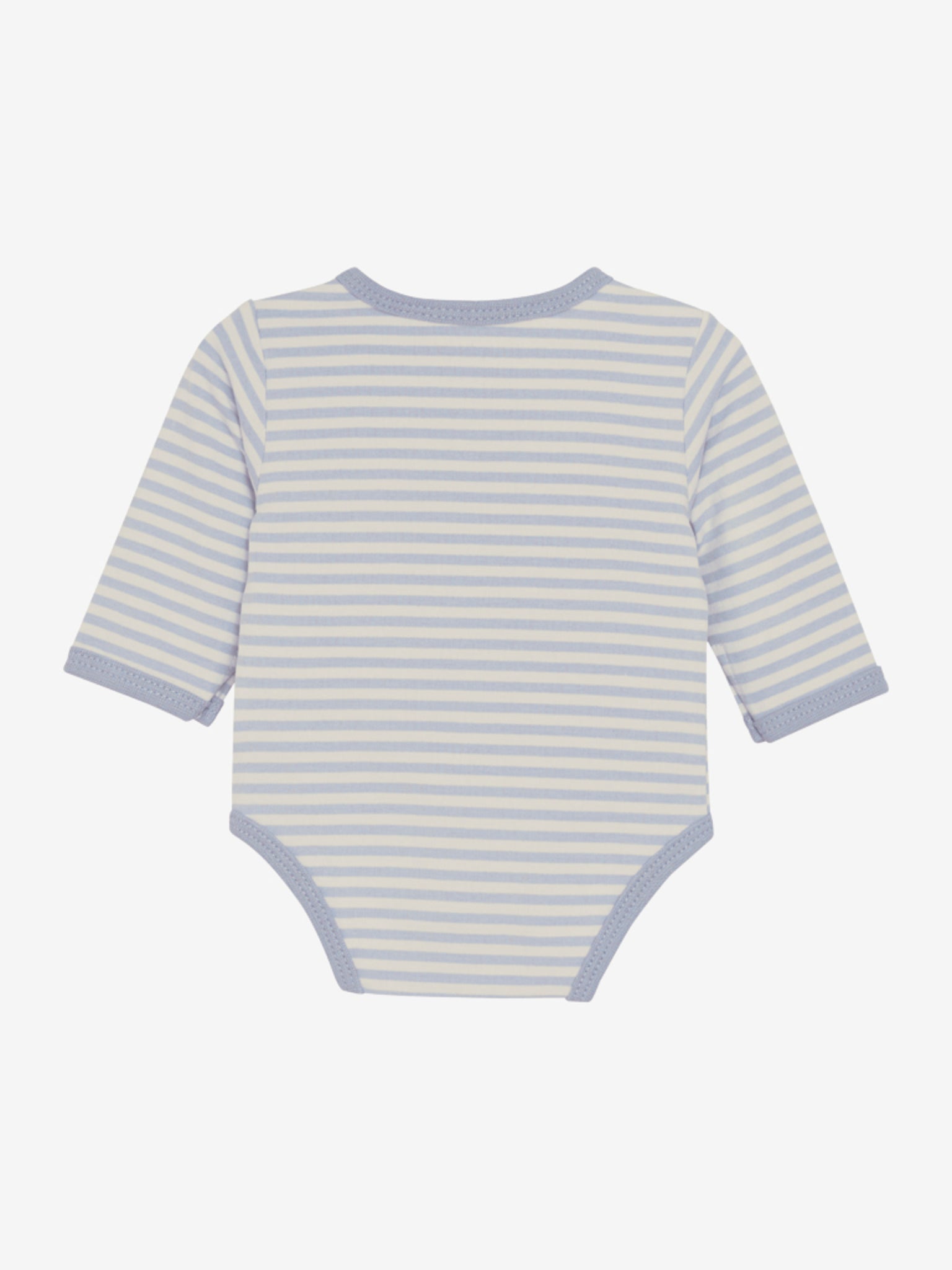 Låt oss presentera Omlottbody LS Y/D Randig från Fixoni. Denna mjuka och randiga body är perfekt för de små med sina långa ärmar och bekväma passform. Kroppen stängs enkelt med tryckknappar mellan benen och har en praktisk omlottstängning på sidan.