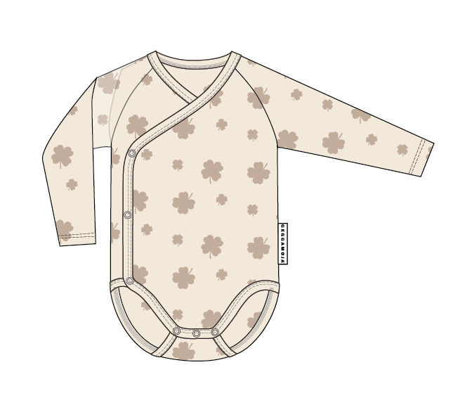 Låt oss presentera Omlottbody Bambu Klöver Beige från Geggamoja. Denna långärmade body är tillverkad i en mjuk och skön materialblandning av bambu och ekologisk bomull. Bambu är känt för sina termiska egenskaper som gör att plagget känns varmt när det är kallt och svalt när det är varmt, vilket gör det till ett perfekt val för barnkläder.