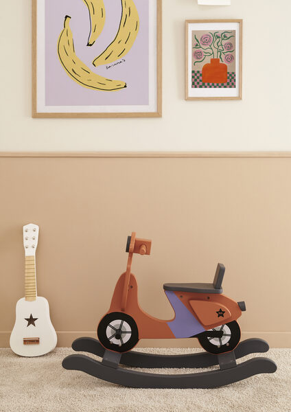 Låt oss presentera Gungscooter rost från Kidsconcept, en spännande leksak som kombinerar lek och balansövning. Denna gungscooter är utrustad med fotstöd och greppvänliga handtag, vilket gör den både säker och bekväm för små äventyrare. Med sina tippsäkra medar kan även de mest fartfyllda "mopedåkarna" känna sig trygga.