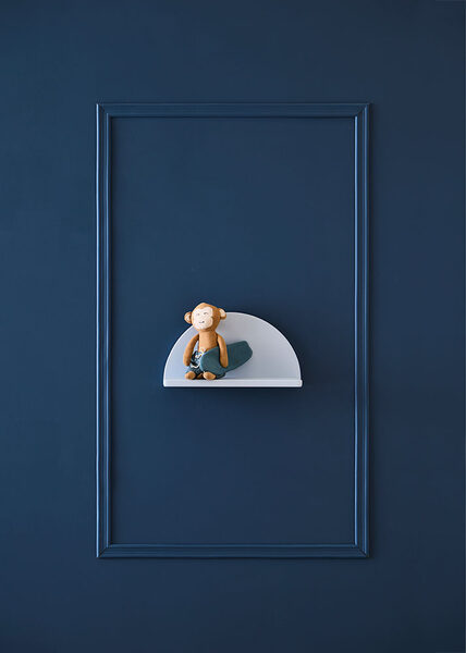 Låt oss presentera Hylla cirkel blå STAR från Kidsconcept, en stilren och funktionell hylla som kan vändas 180 grader och användas med eller utan krok. Den är perfekt för att visa upp prydnadsföremål eller din favoritteddybjörn. Med dolda fästen får du en ren och snygg look på väggen.
