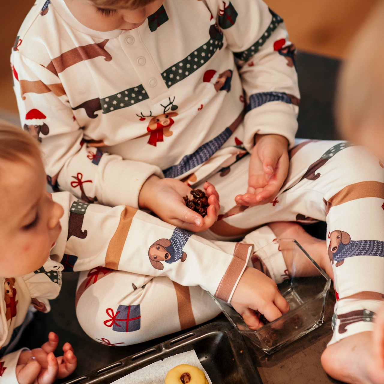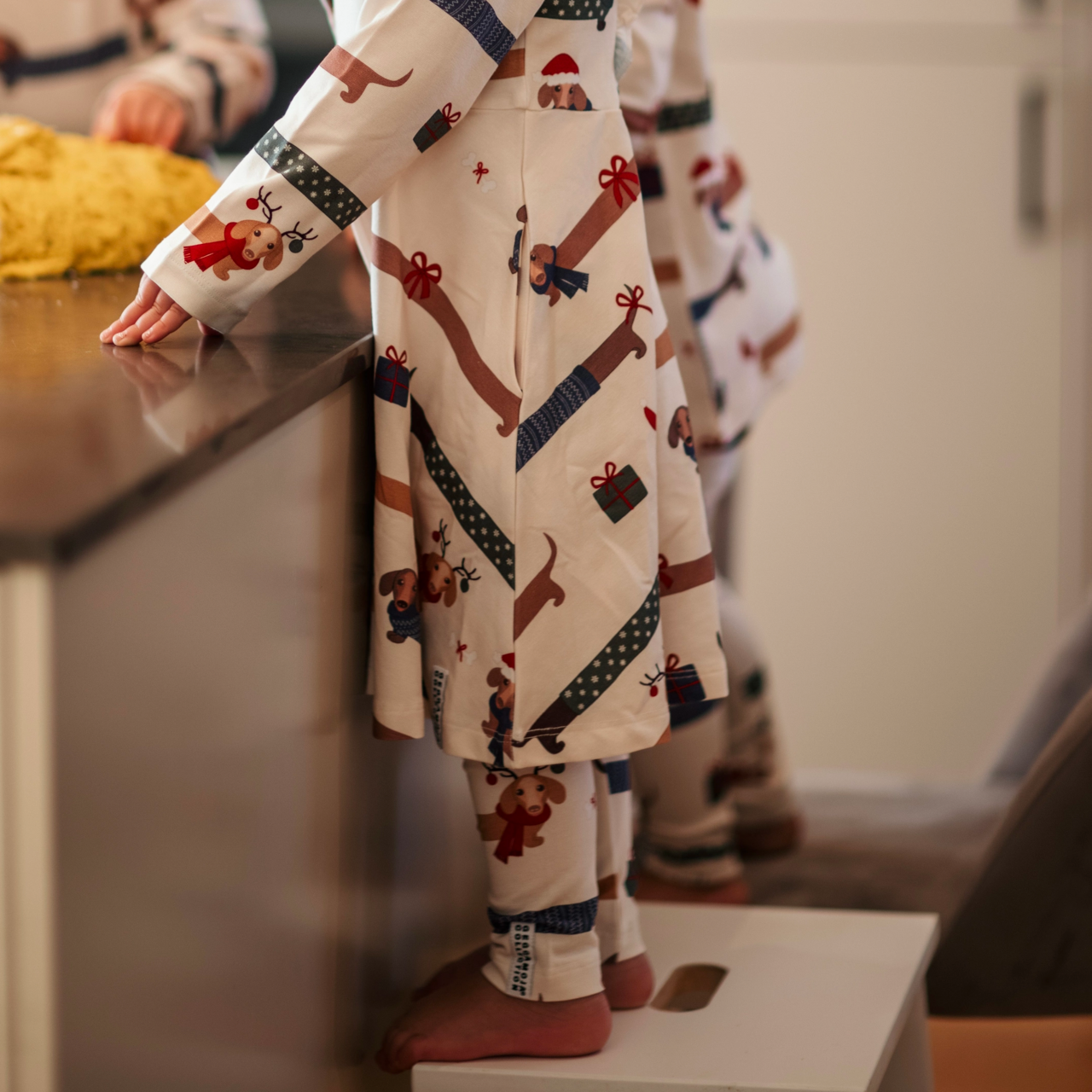 Låt oss presentera Leggings Bambu Jultaxar från Geggamoja, ett par leggings tillverkade i mjuk bambu-trikå med justerbar resår i midjan. Dessa leggings är perfekta att matcha med en t-shirt, tröjor eller klänning för en komplett outfit.
