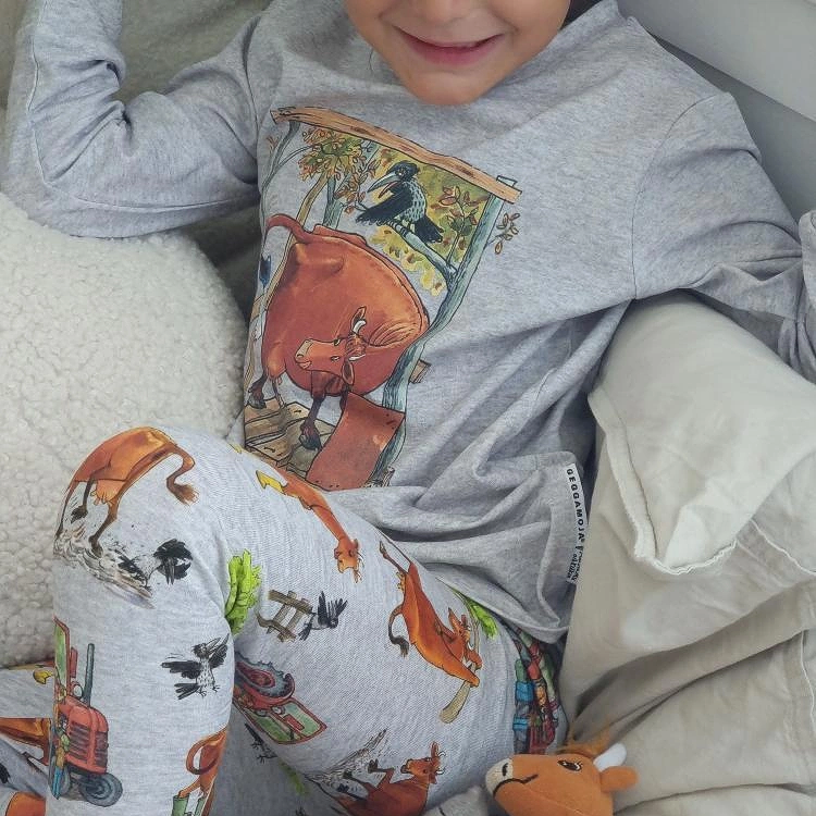 Låt oss presentera Leggings Mamma Mu och Kråkan Grå från Geggamoja. Dessa sköna leggings är perfekta att matcha med allt från klänningar till tröjor eller hoodies. De är tillverkade i mjuk ekologisk bomull som ger en behaglig känsla mot huden.