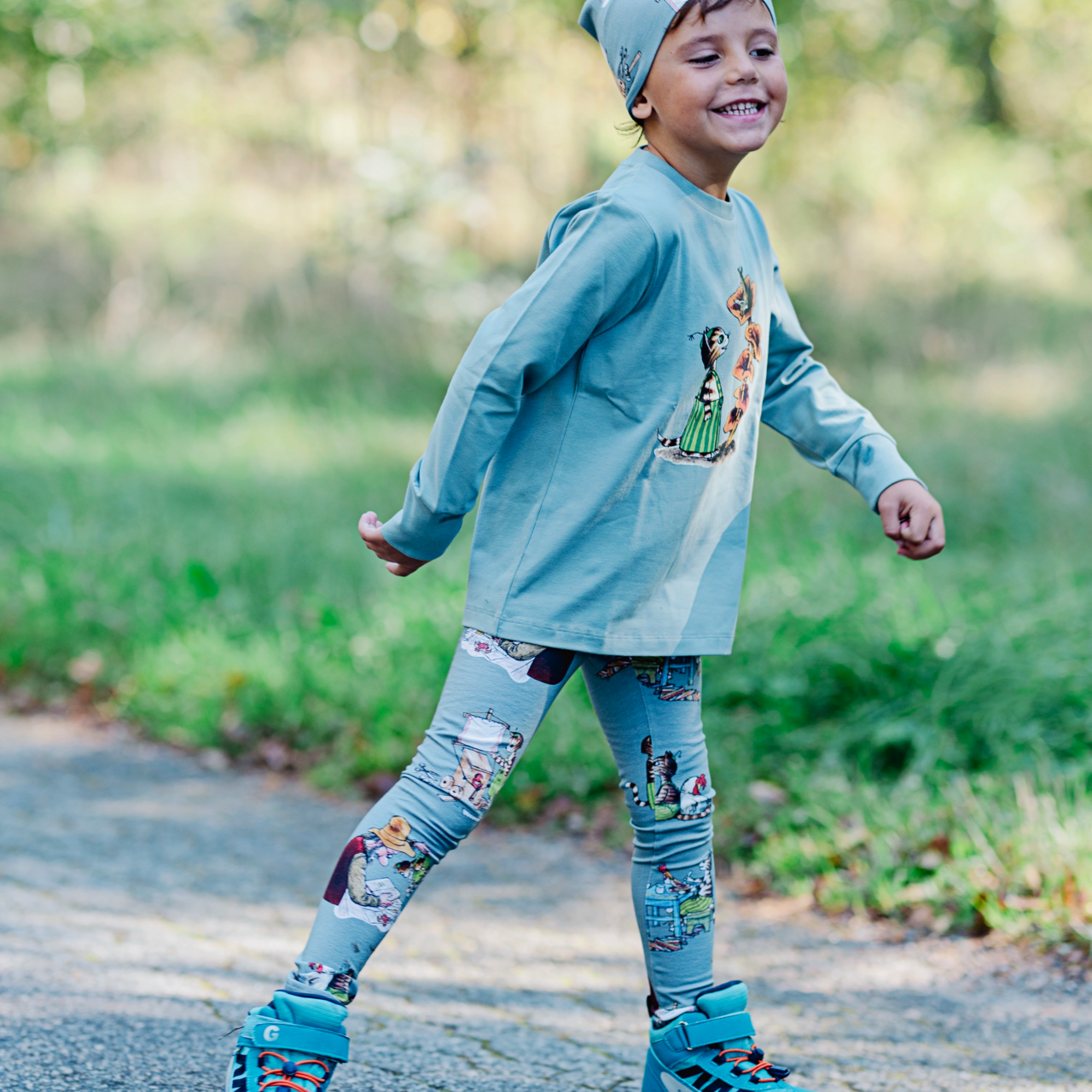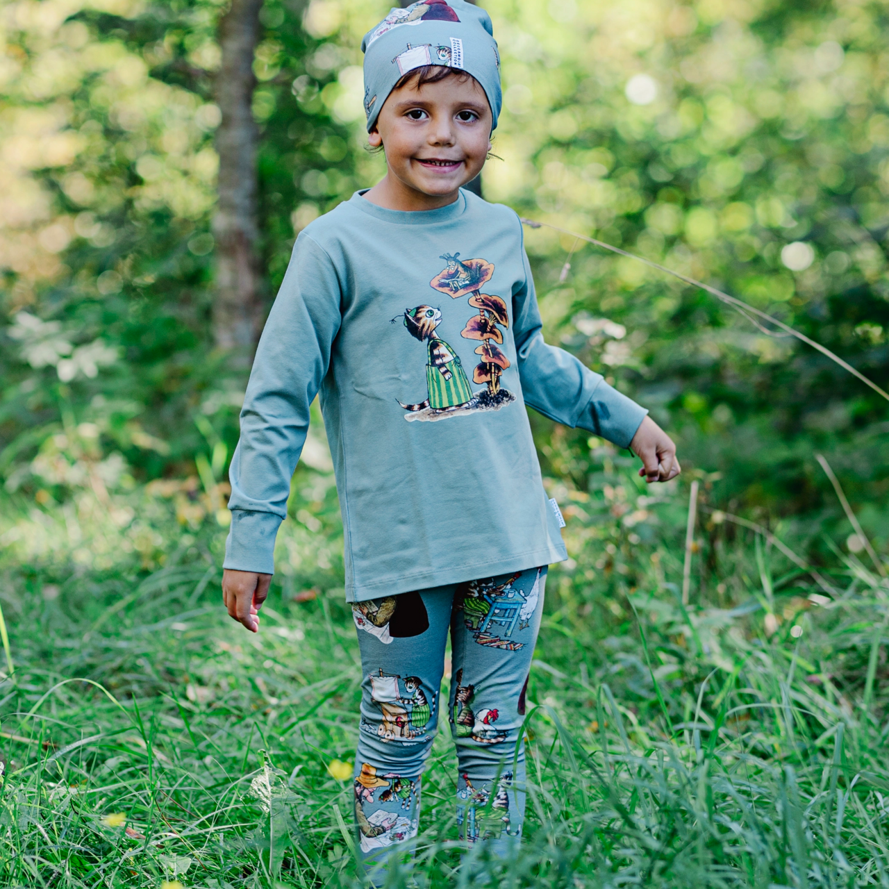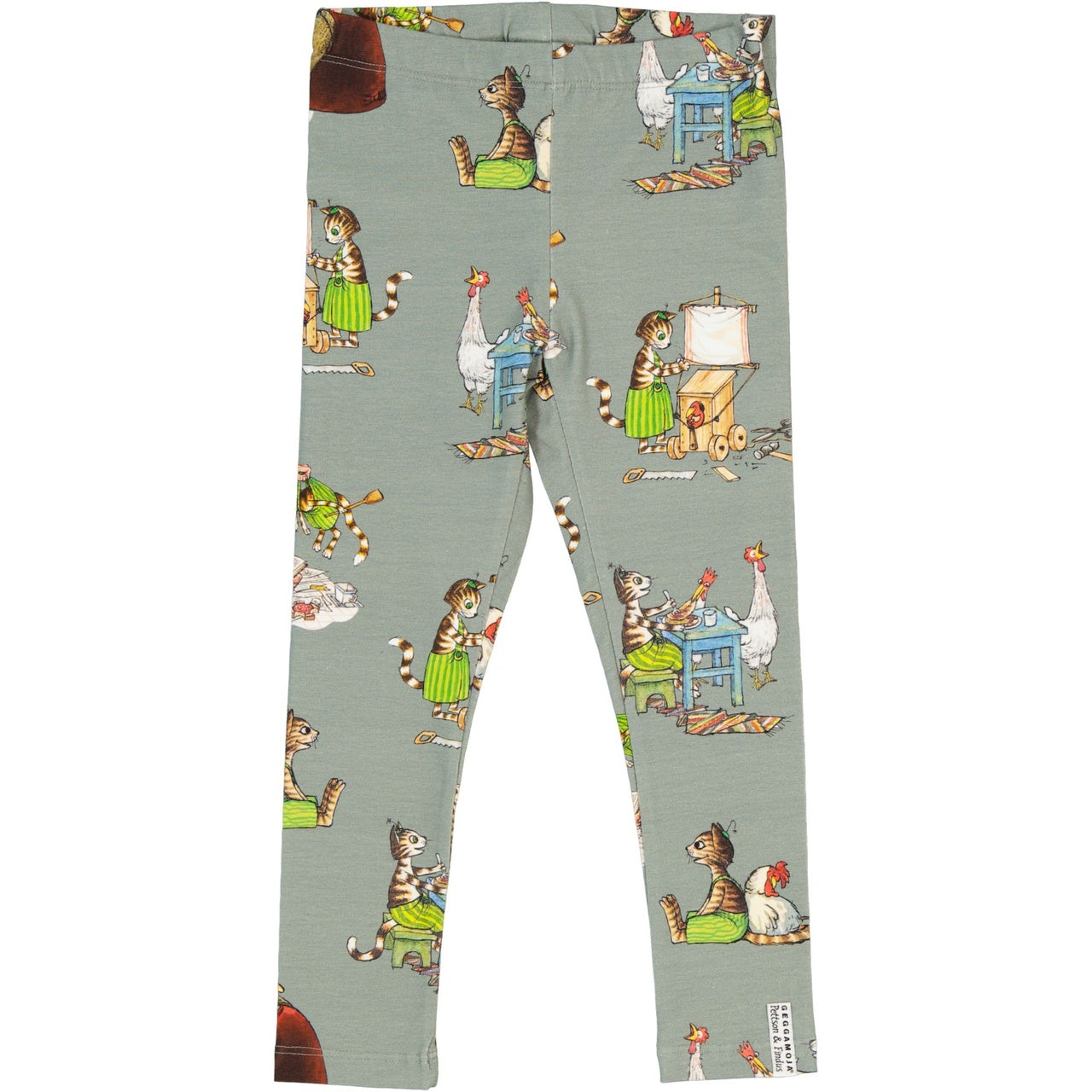 Leggingsarna har en reglerbar midja som gör att de sitter perfekt oavsett aktivitet. Den gröna färgen med Pettson och Findus-motiv ger en lekfull touch till varje outfit. Ett utmärkt val för både lek och vardag.