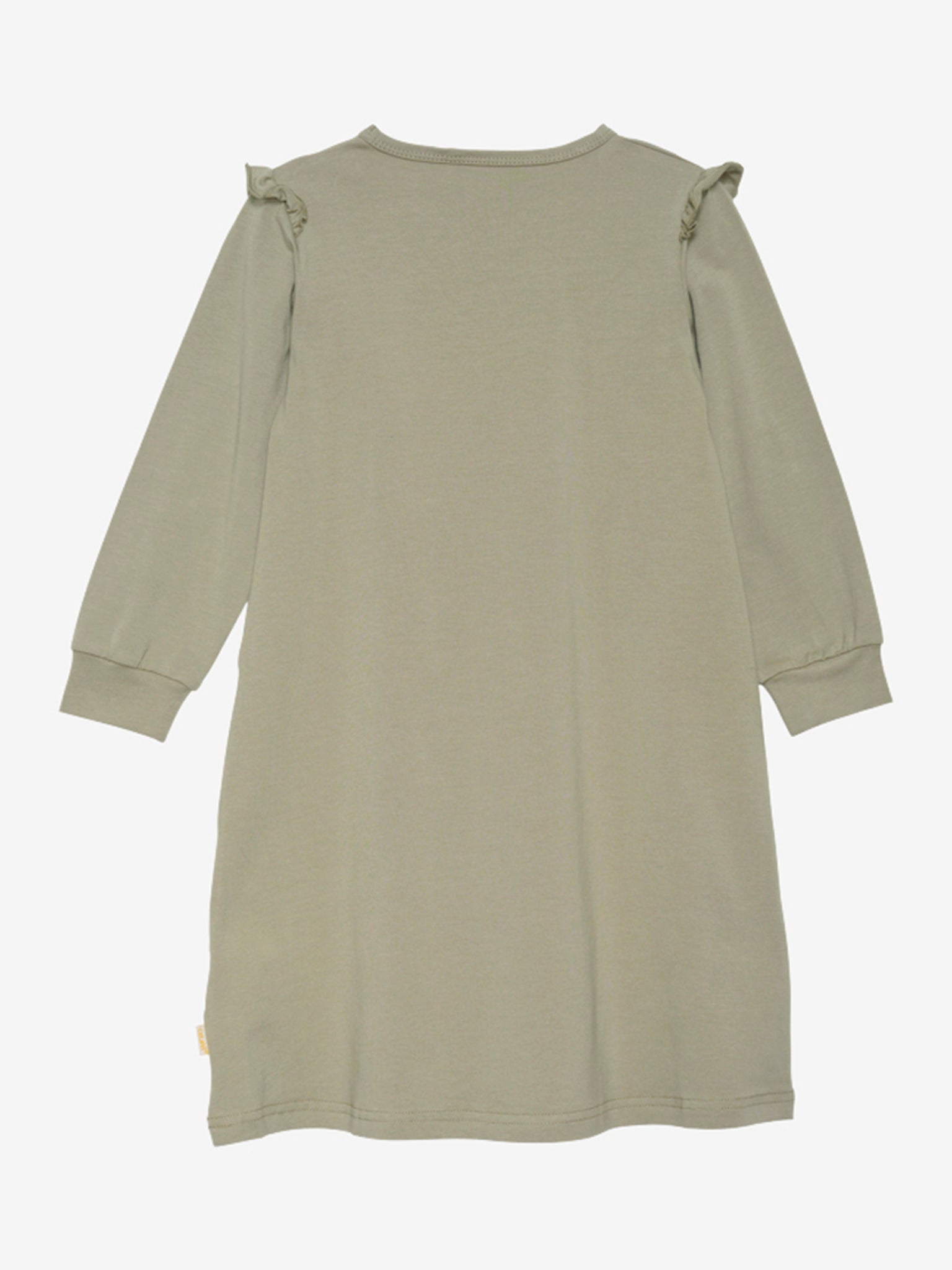 Nattlinnet har en vid passform nedtill och är dekorerat med volanger på axlarna, vilket ger en söt och lekfull touch. Ribbstickningen i halsen och vid handlederna bidrar till en skön och säker passform.