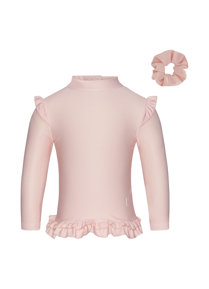 Låt oss presentera UV-tröja med Volang - English Rose från Vanilla copenhagen. Denna långärmade simtröja är både funktionell och söt, med volangdetaljer, stretchigt material och raglanärmar som ger barnet fri rörelse vid lek och bad.