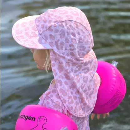 Låt oss presentera UV-keps Leo Rosa från Geggamoja, den perfekta solhatten för att skydda ditt barns huvud under soliga dagar. Tillverkad i ett snabbtorkande material med UV50+, blockerar den effektivt 98% av solens skadliga UVA- och UVB-strålar.